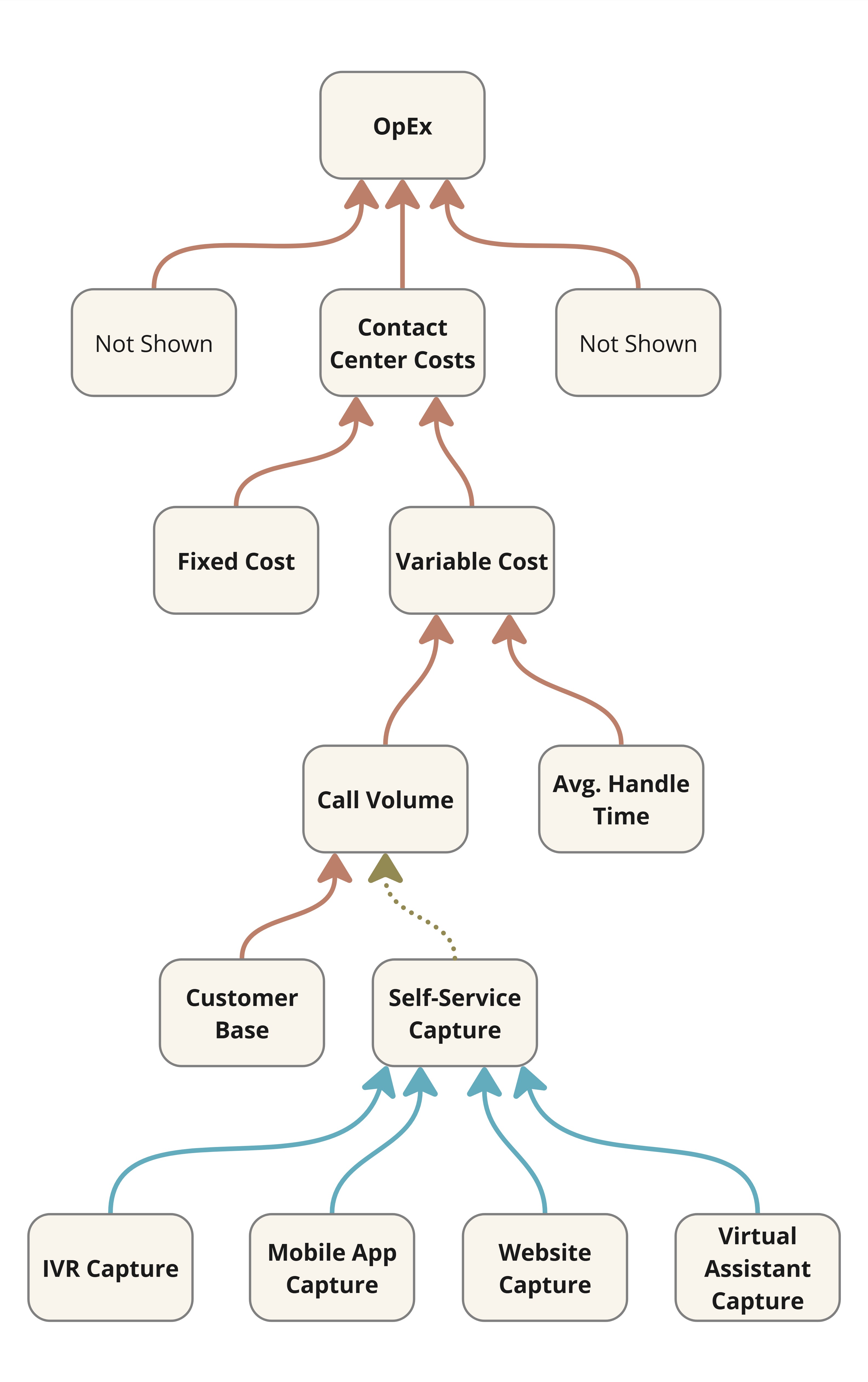It is not enough anymore to assume success based on mere solution delivery. Or even the number of satisfactory chatbot sessions which Figure 3 calls virtual assistant capture. That’s proximate impact. It’s what the Lean Startup mantra of build-measure-learn aims for typically. However, downstream impact in the form of call savings is what really matters in this case. In general, proximate impact might not be a reliable leading indicator of downstream impact.